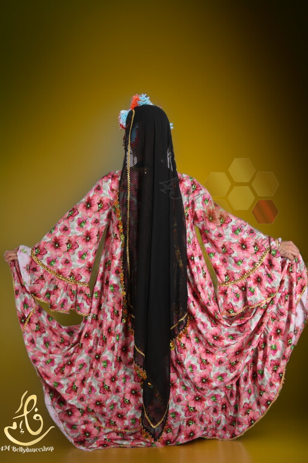 花柄ファラーヒガラベーヤ(ポンポンスカーフ付き