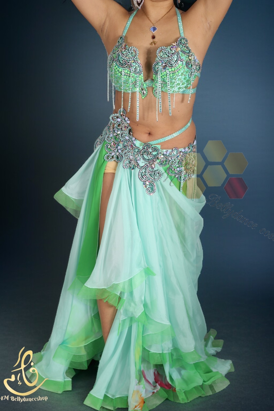 繊細な装飾と美しいシルエットが魅力のベリーダンス衣装